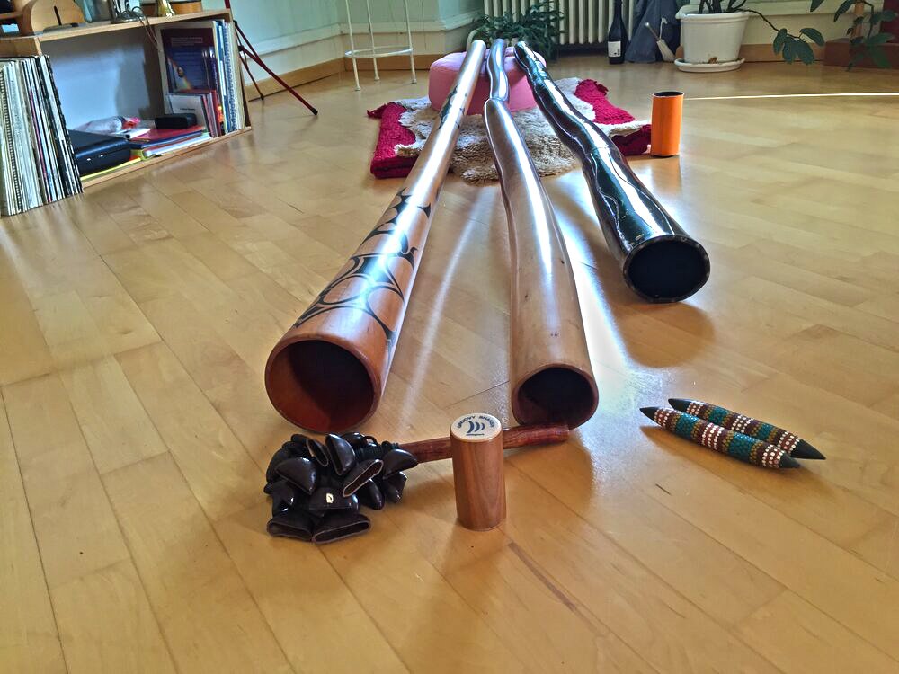 Die Didgeridoos können für den Tag gratis geliehen werden.